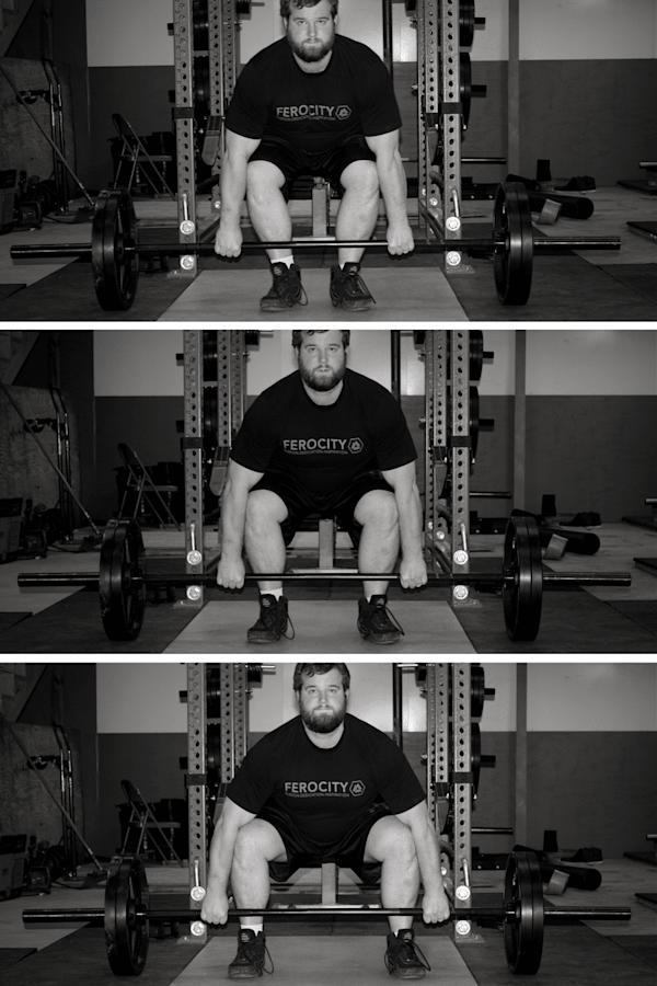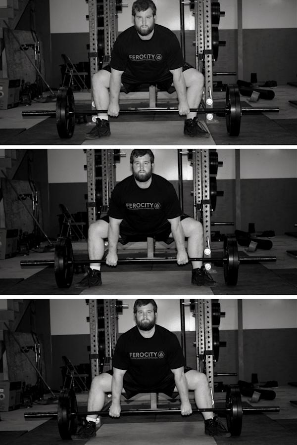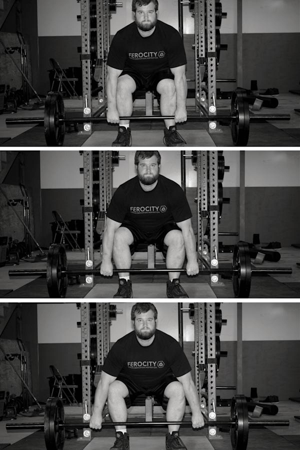 ポーズデッドリフト:挙上の様々な部分でポーズするデッドリフト(一般的には床からバーが浮いた直後や膝の高さ)。セットアップの章で解説したように、ポーズデッドリフトはバランスを崩してしまう問題や、挙上中に正しいポジションを取る練習に非常に効果的な種目です。