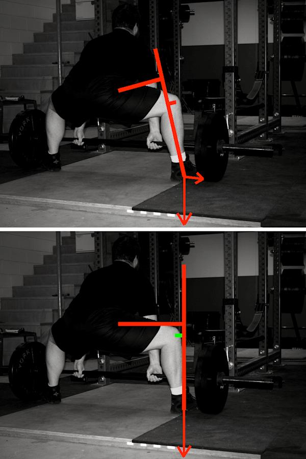 - 重りをあげるために必要な外部屈曲モーメントの大きさは2つの要因によって左右されます。重量そのものと、モーメントアームの長さです。重量が増えてモーメントアームが同じ長さのままの場合、重量は同じでモーメントアームが長くなった場合、もしくは重量が増加しモーメントアームも長くなる場合に、筋肉はより大きな外部屈曲モーメントに打ち勝たなければなりません。なので、低重量よりも高重量の方が難しく(当たり前)、デッドリフトが苦手な体型の人(一般的には腕が短いため腰を下げてよりバーベルの後ろ側に行かなければいけない人)が苦戦するのです。
