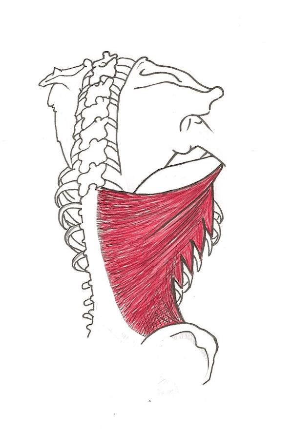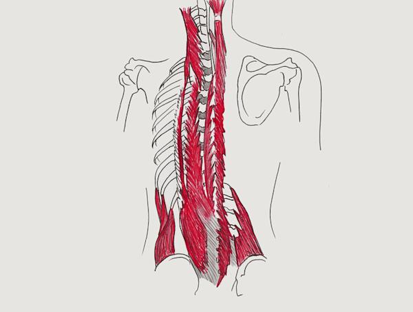 脊柱起立筋は骨盤上部と肋骨、そして最も重要な脊柱に付着しています。どの筋肉も収縮時に脊柱を伸展させる働きです。