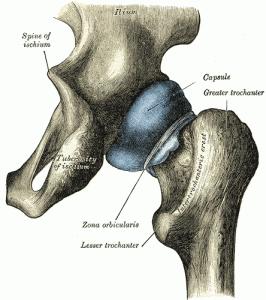 大腿骨骨頭は寛骨臼(ヒップソケット)に入る部分です。頸部は骨頭と骨幹部を繋げる役割を果たします。頸部と骨幹部が繋がるあたりに坐骨大結節と小結節があり、内転筋や回旋筋群の停止部となります。