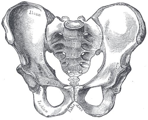 骨盤は6つの骨から構成されていて、それぞれに目的があって繋がっています。両側に腸骨、坐骨、恥骨があります。腸骨は骨盤の上部にある、腹斜筋の真下に出ている骨です。坐骨は後ろ側の骨盤下部に存在し、恥骨は鼠蹊部あたりである前側の骨盤下部にあります。